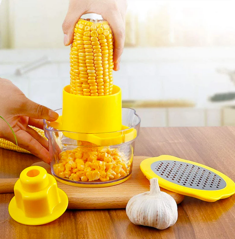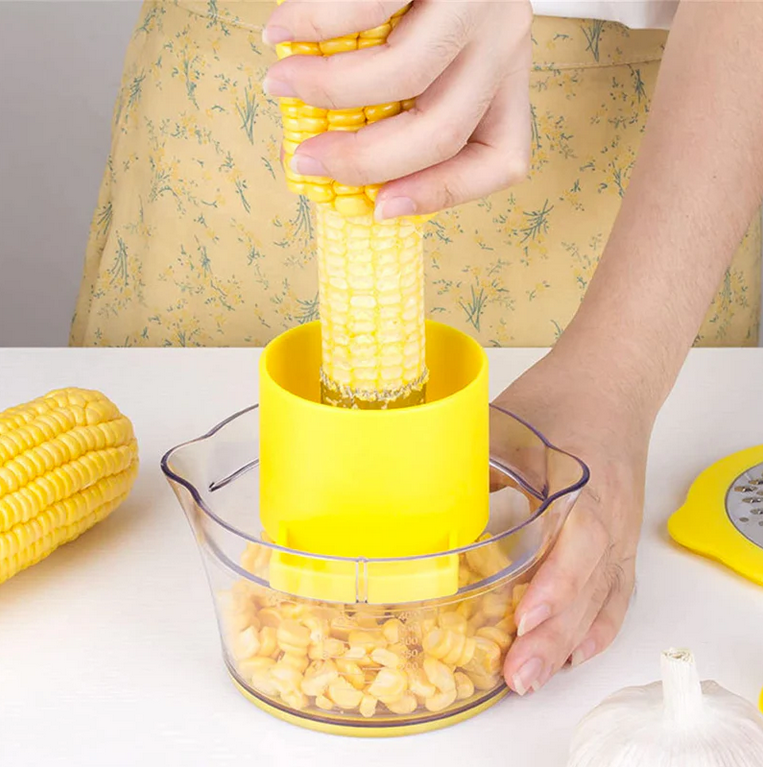 No necesita instalación, solo deslizando el pelador de maíz a lo largo de una mazorca de maíz, los granos se cortan y recogen rápidamente dentro de la taza.
